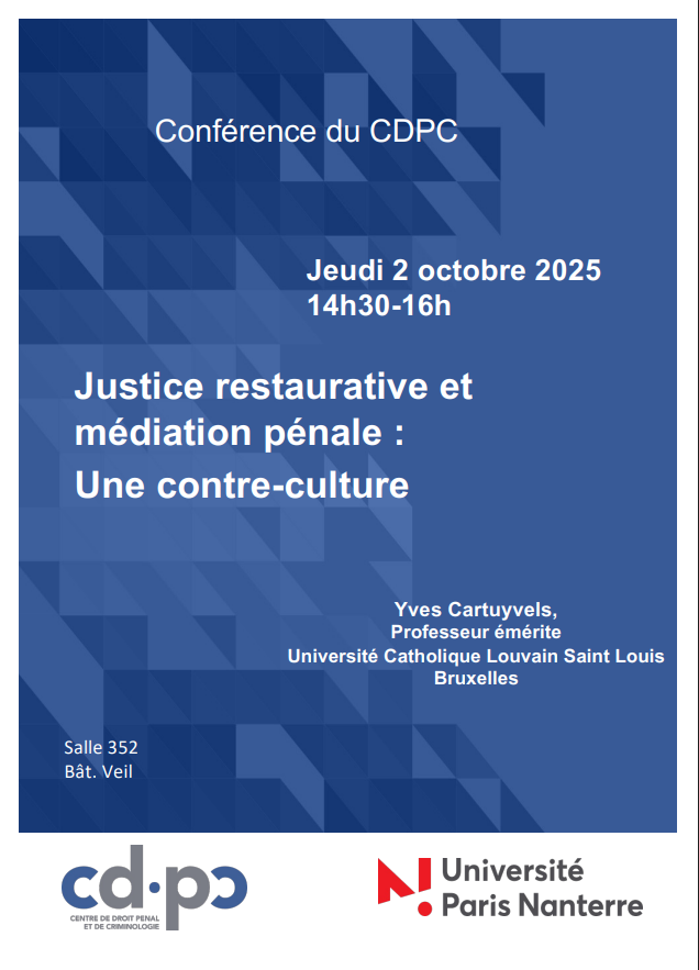 Le professeur Yves Cartuyvels, invité à l'Université Paris Nanterre, dispensera ce jeudi 2 octobre 2025 à 14h30 une conférence intitulée :
